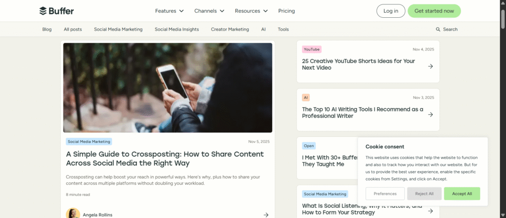 Buffer blog specifically focuses on social media-related blogs. By considering these blogs, you can enhance your online engagement and can embrace customer loyalty. It specifically offers learning about scheduling blogs and performance analytics. Buffer Blogs also provide practical tips and deep research, helping you learn how digital marketing actually works in a more strategic way, especially on social media platforms such as X, instagram and facebook.